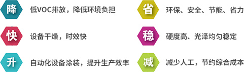 大宝漆为助力行业“油改水”顺利转型,重磅推出了一体化的“油改水全套解决方案”。该方案包含售前、售中、售后的全套服务系统,在为广大家具厂客户提供环保产品的同时,还1对1根据客户需求开发设计涂装工艺、成本核算等服务。
