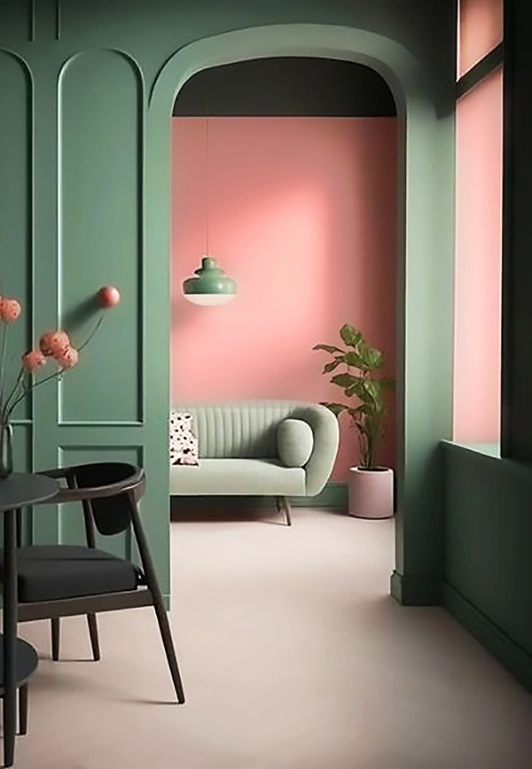 在室内空间中刷上同类色的薄荷色系为居室注入一股浅淡的温柔气息并与木色搭配,WOW!氧气感十足,国潮复古风,平和与时尚兼具,同时为空间增添自然原生态的氛围。