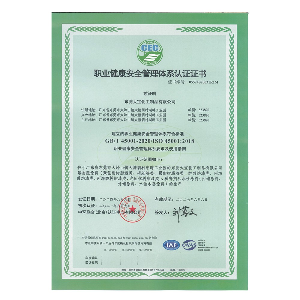 职业健康安全管理体系认证(东莞大宝)