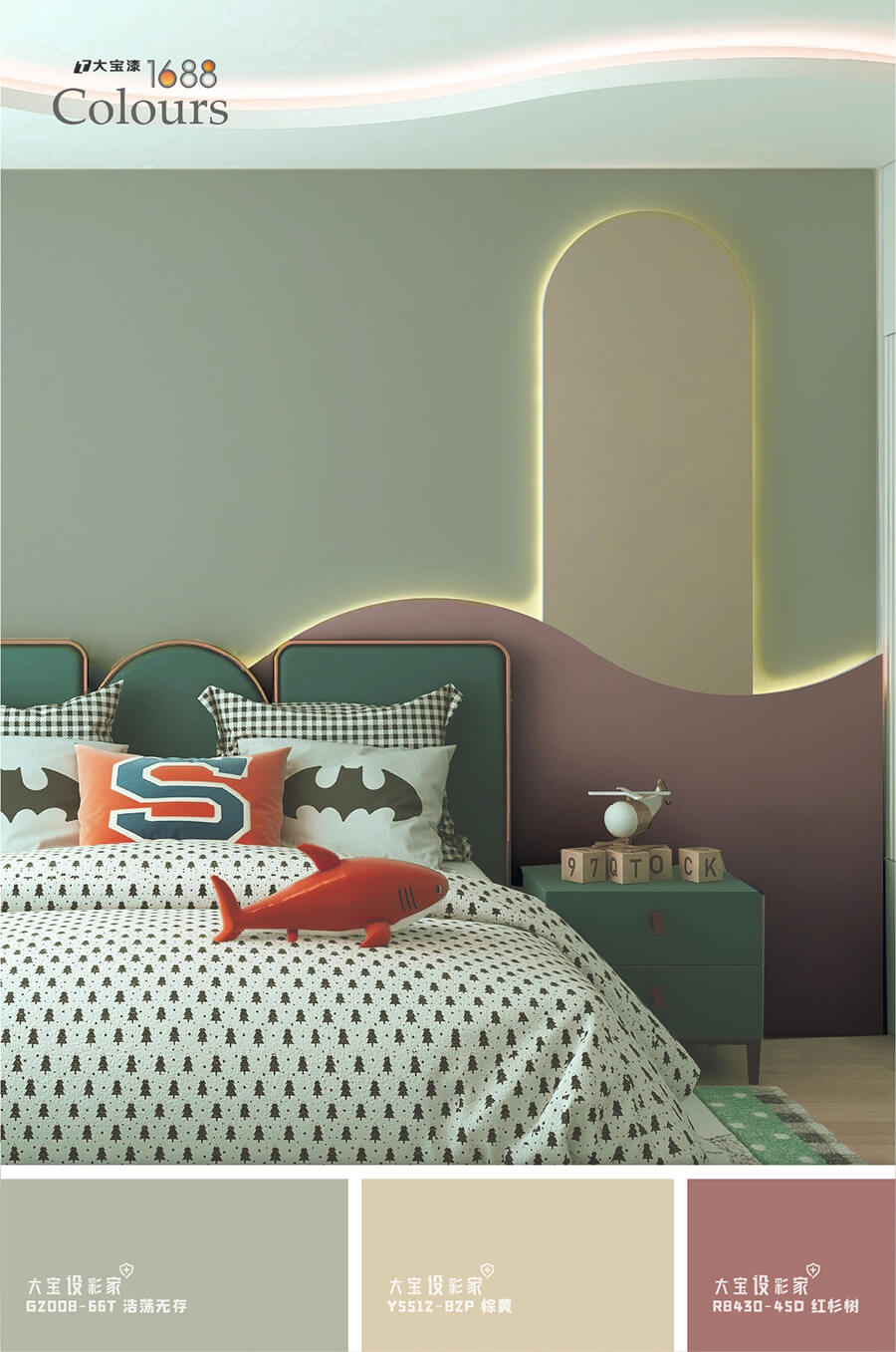 儿童房的设计不妨采用几何和线条设计,选择较深的灰绿色为主色调,增加空间中的宽阔感,搭配红色系 樱花视频在线,活泼欢快即刻拥入,相比较高饱和度的颜色,加入灰色中和,这种对比色调的搭配,整体空间相互制约抵消,不仅点亮空间,还予人一种赏心悦目的感觉, 。