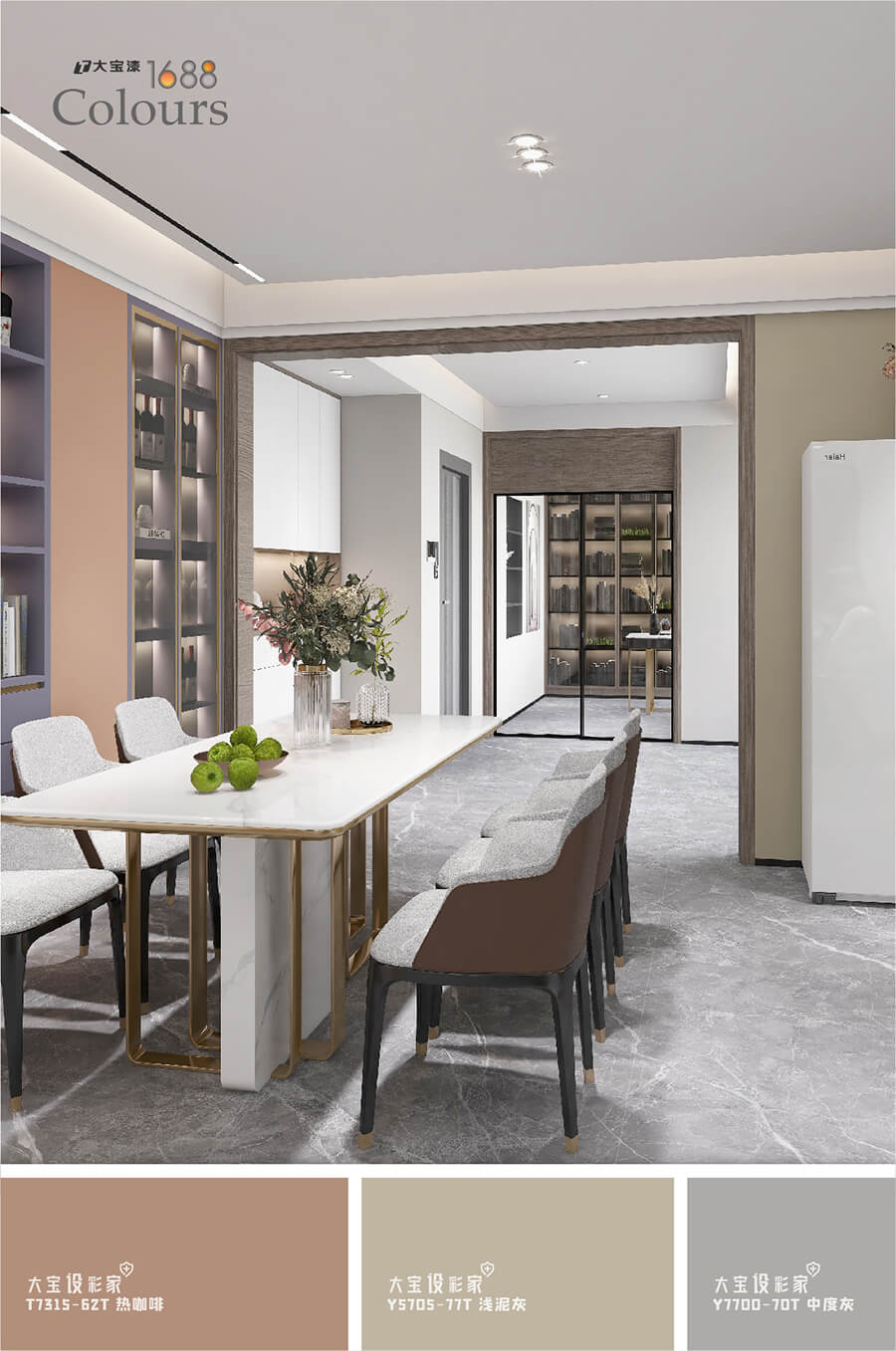 低饱和的色调度,将家居空间中大面积填铺,大宝春桃橘(T4925-75T)的与众不同,在于浓而不烈,刚柔相济,与雾霾灰沙发,大理石纹茶几 樱花视频网站,金属灯饰等材质搭配起来,达到冷暖色系之间的平衡,利用大宝涂料,创造出有灵魂的空间, 。