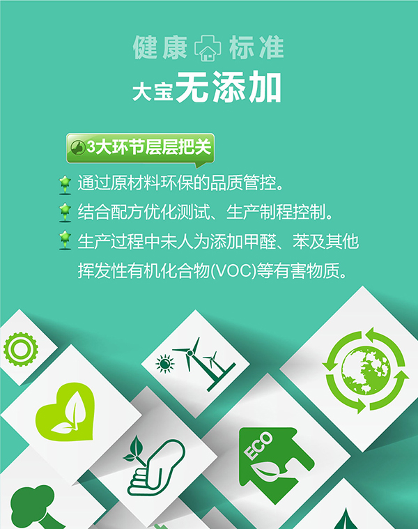 *无添加:指配方设计和生产过程中不人为添加VOC、甲醛、重金属、APEO