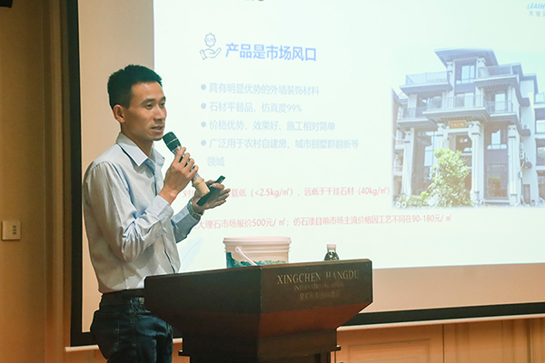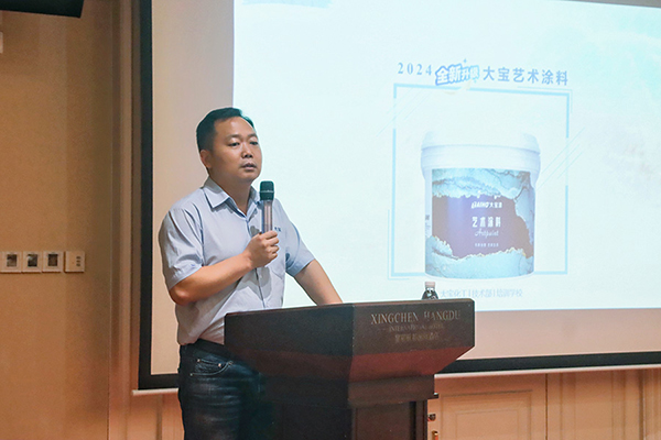 西南区王总监详细介绍大宝艺术涂料施工工艺及效果展示。通过生动的案例和详细的演示,与会者对新品的性能和优势有了更深刻的认识。