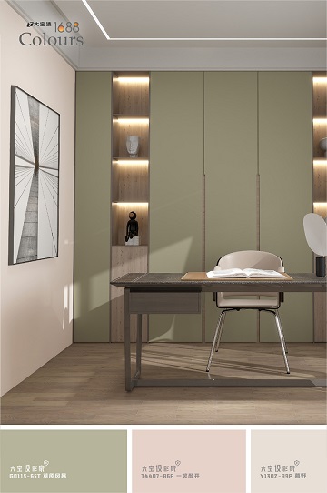 T4407-86P 一笑颜开是极佳的过渡色与背景色,在空间设计中,用于主墙面时,它能与木质家具相互呼应,让整体更具亲近感。若点缀在抱枕、窗帘、床品等布艺中,则带来一种低调的舒心,让家中随处都能拾起笑意。