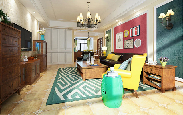 但对比色若过多视觉上会太眼花缭乱,只要抓住一个重点,在一个空间内不超过三个以上的基本色,例如:墙面一个,地面一个,沙发或床单再一个颜色;或是墙面、地面三个颜色,其他软件都用单一颜色搭配! 而且如果不怕失败大胆一点下手,可以如案例图中墙面运用红色(暖色)及绿色(冷色)成为空间的主色,地面及其他软件都尽量用同色搭配。